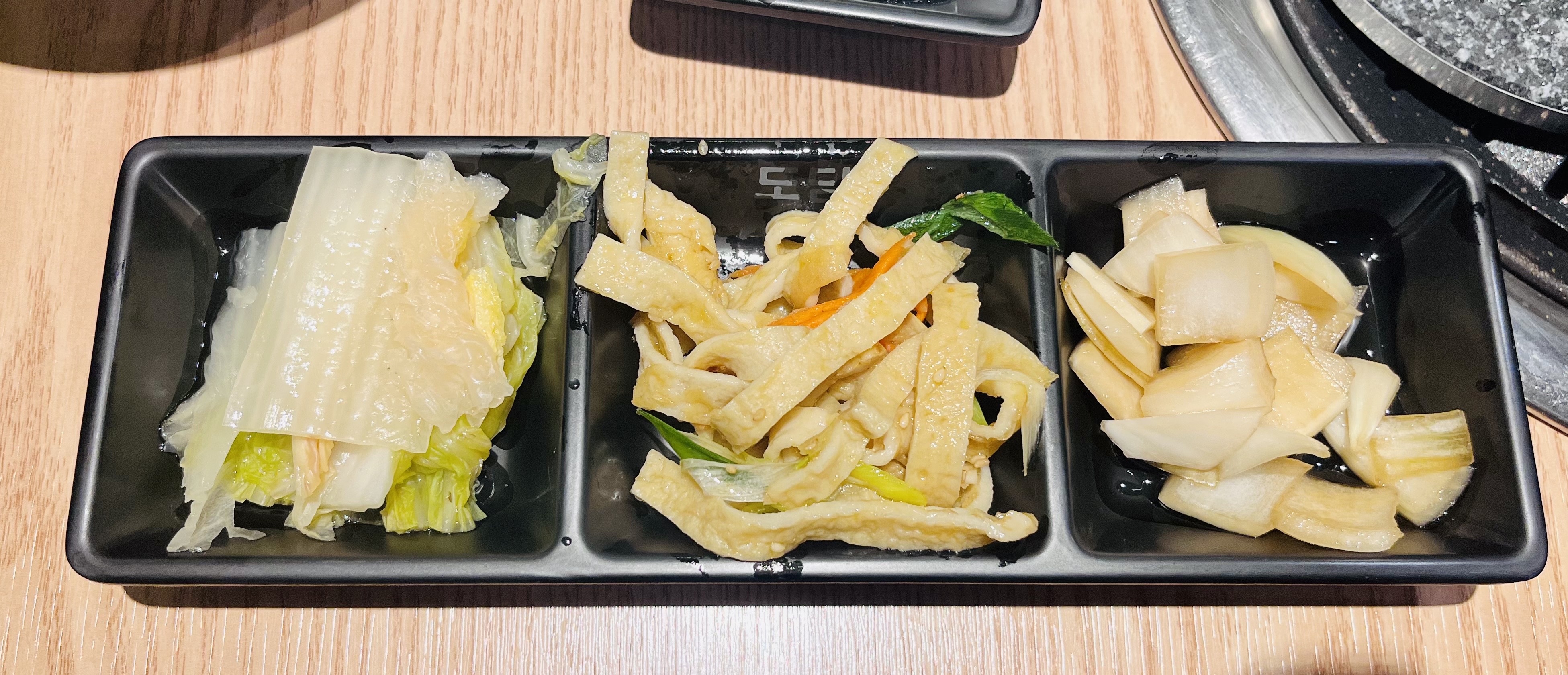 백김치, 어묵, 양파절임 등 아주 다양하게 나와요.