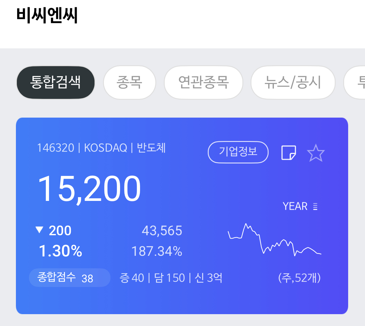 코스닥에 상장한 반도체 관련주 비씨엔씨입니다.