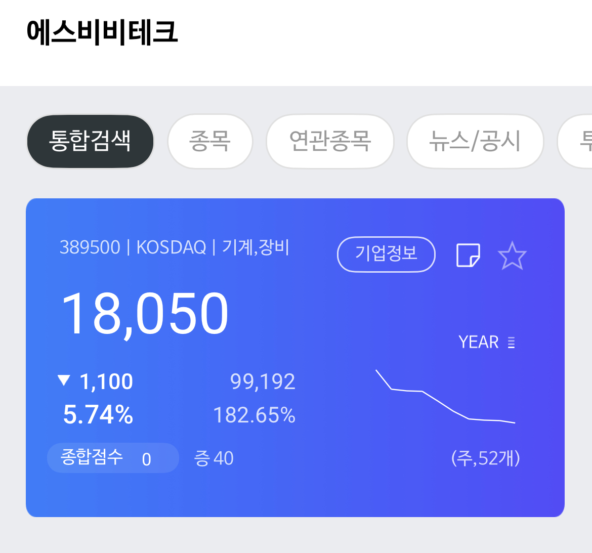 에스비비테크와 같은 종목인데 기계와 장비 쪽 상황도 좋지 않은가 봅니다.