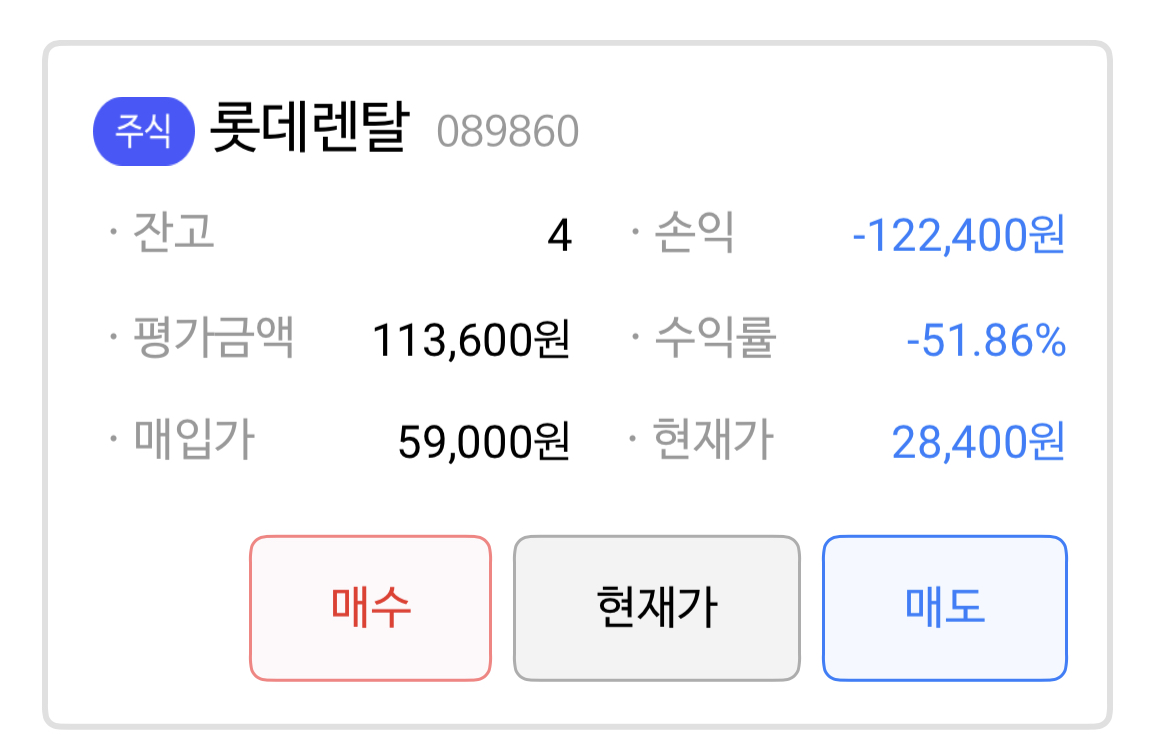 작년에 물린 롯데렌탈은 아직도 가지고 있는데 바닥을 모르고 하락하고 있습니다.