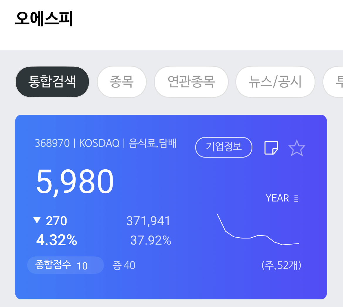 코스닥상장, 음식료, 담배 관련주 오에스피입니다.