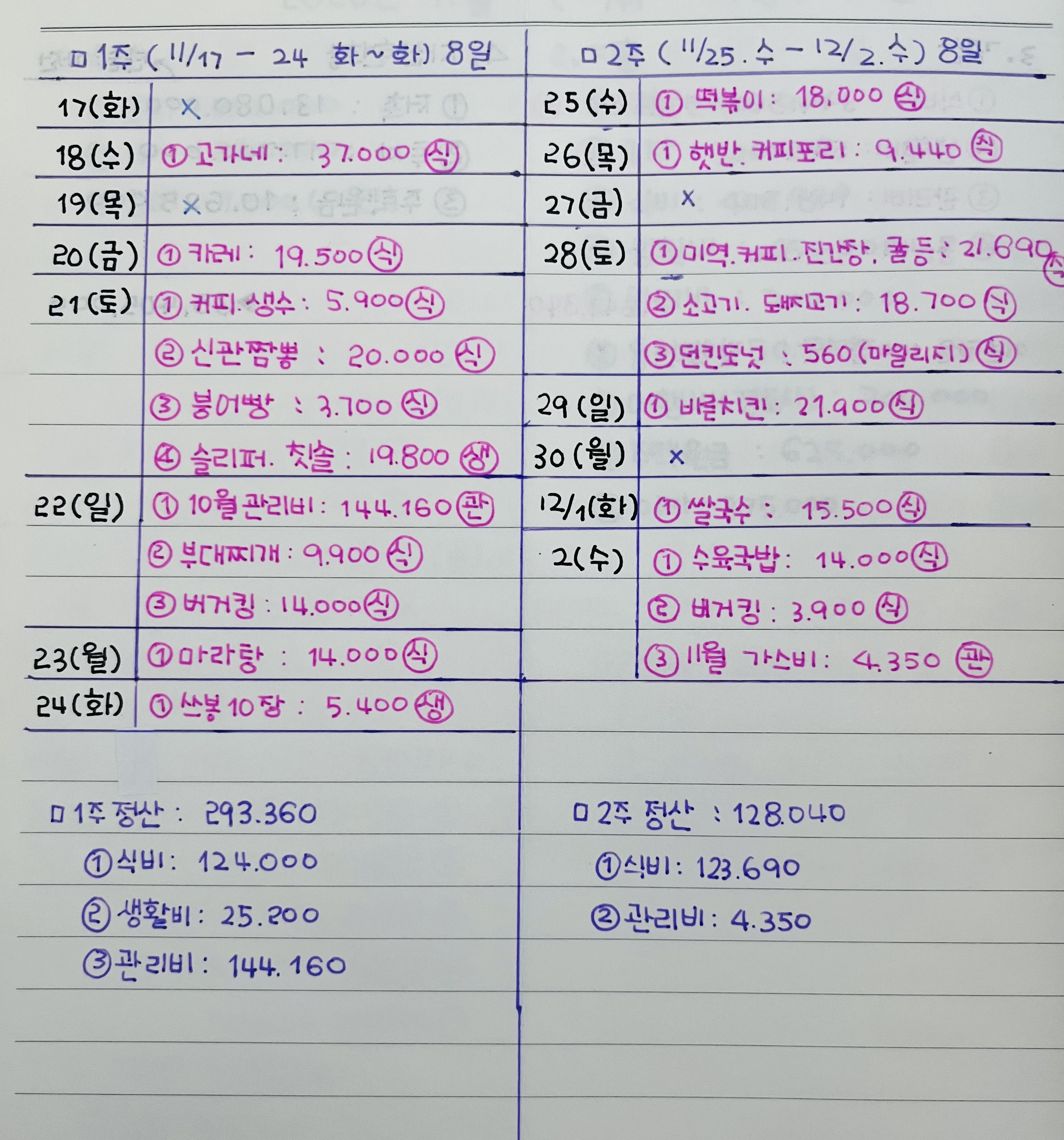 가끔 가계부를 써서 뭐 하나 싶을 때가 있어요.