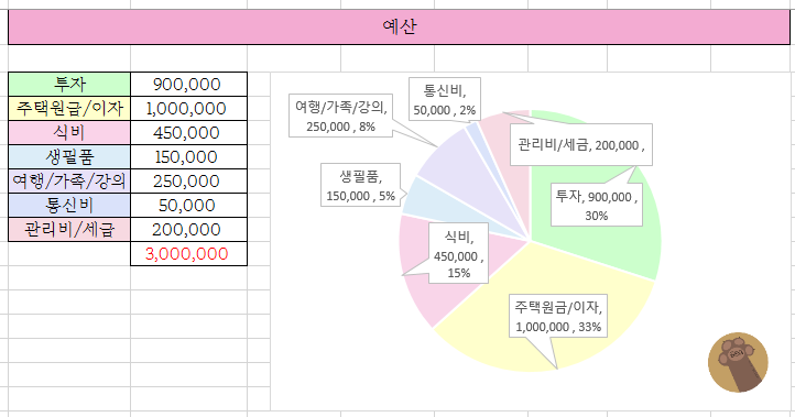 저는 가계부에서 가장 중요한 부분은 예산이라고 생각해요.
