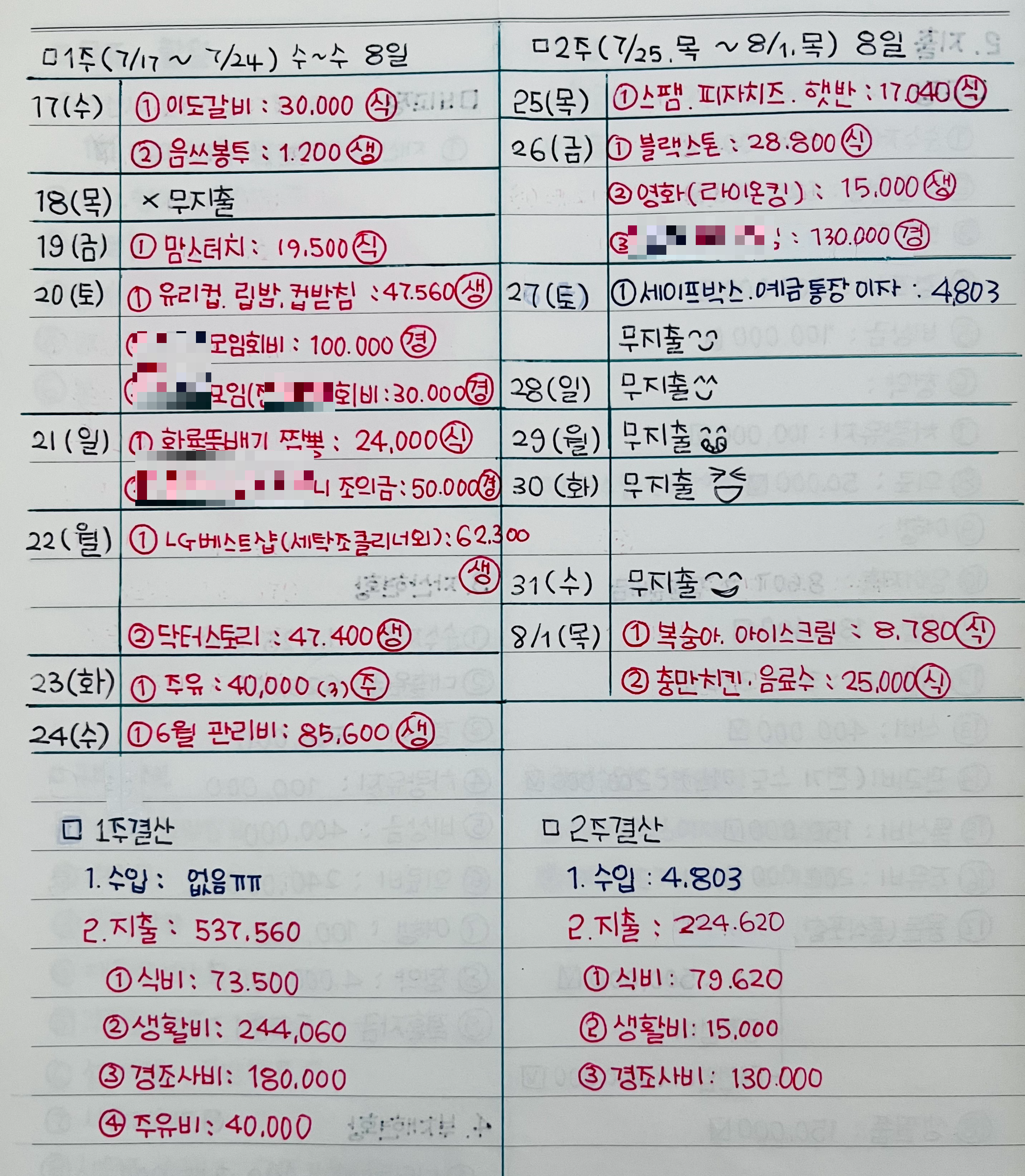2020.07.25 - [경제적 자유를 위한 노력/자산관리] - 아날로그 가계부를 쓰다.