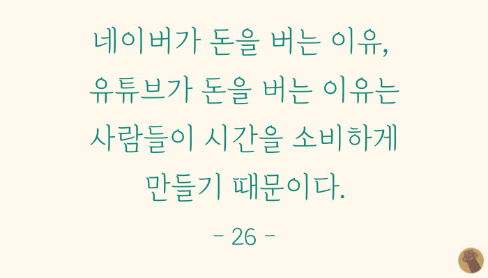 그렇기에 다른 사람의 시간을 가져올 수 있는 곳으로 돈도 자연스럽게 흘러들어 오는 거죠.