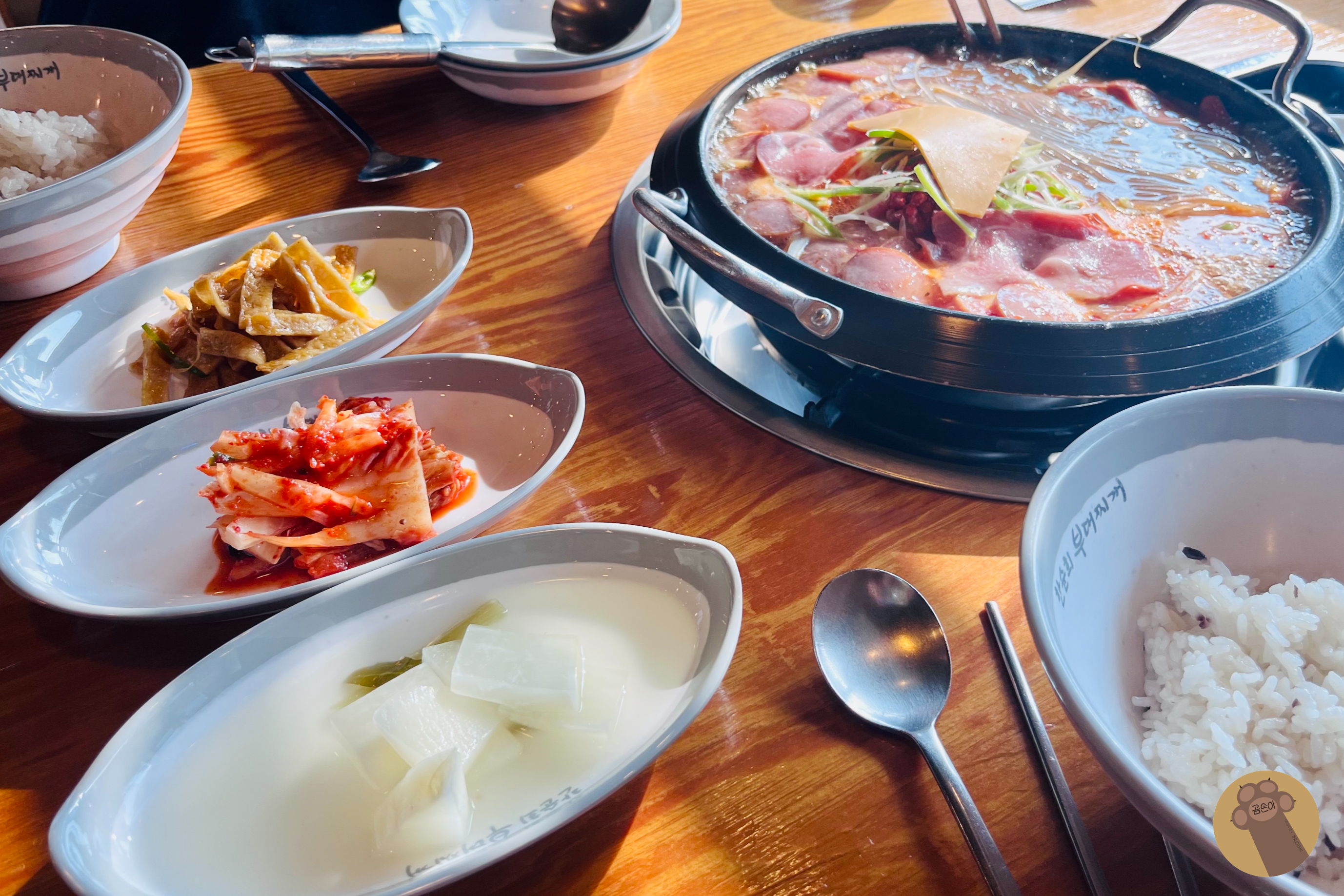 윤기나는 쌀밥에 부대전골의 환상궁합: 충남 아산시 신송탄부대찌개