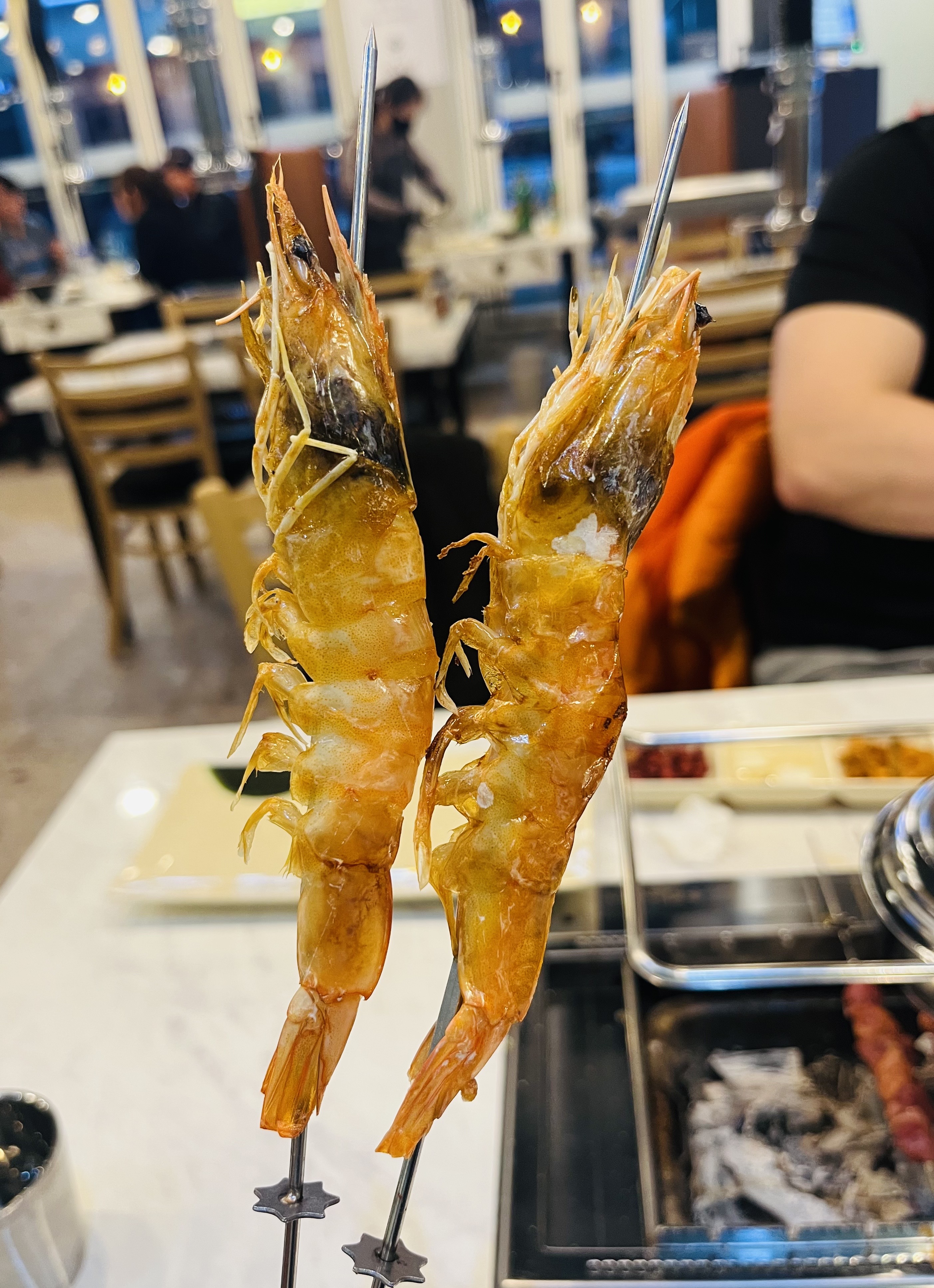 꽤나 큰 크기를 자랑하는 새우꼬치예요.