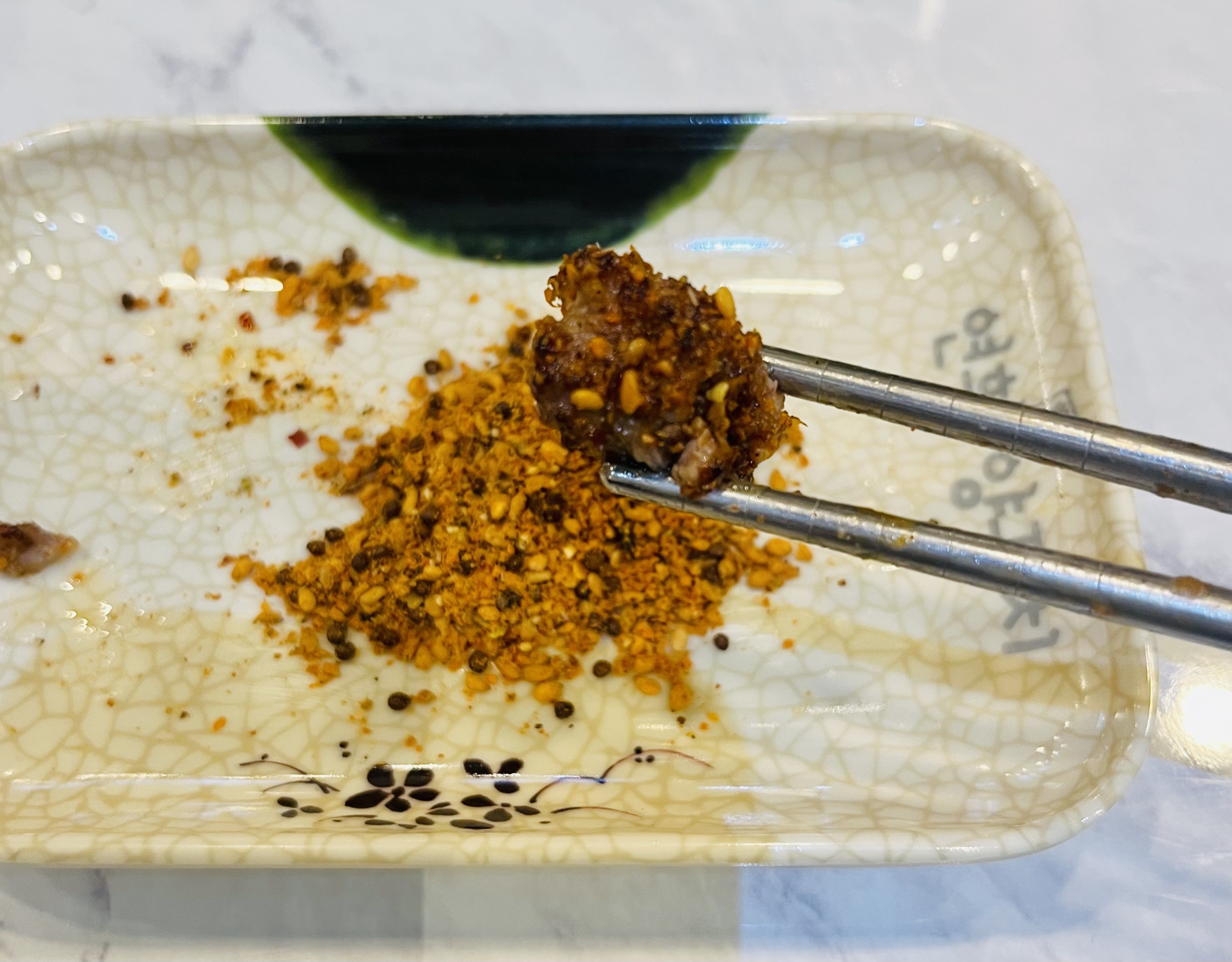 잘 익은 양꼬치를 소스에 콕 찍어먹으면 향미가 진하게 올라오면서 더 맛있어요😋