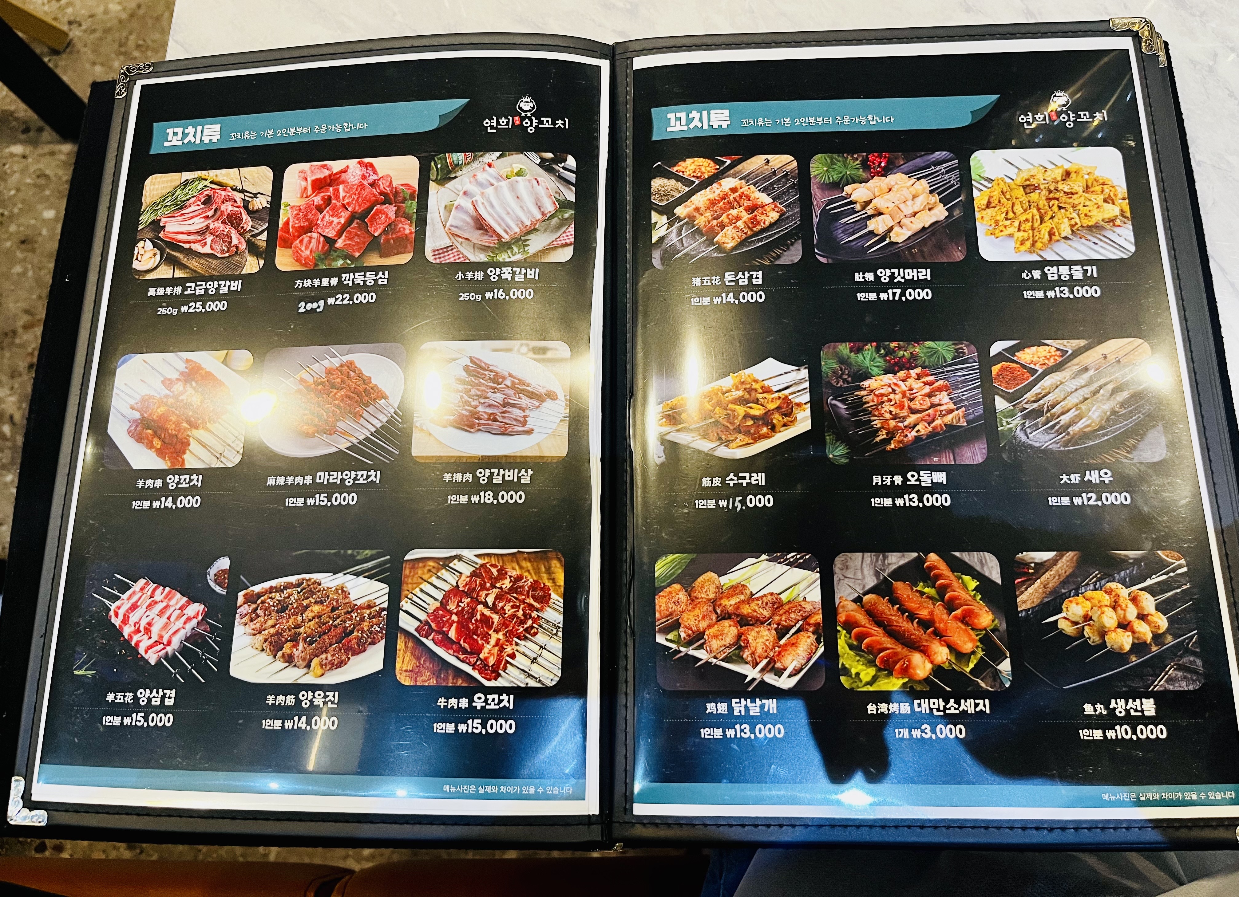 양꼬치는 냄새가 안 나는 게 포인트인데, 연희양꼬치는 아주 담백하고 맛있는 양꼬치 전문점이었어요.