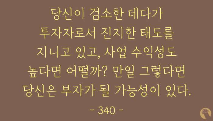 부자가 될 수 있는 방법을 단 한 문장으로 쓴 명확한 표현이 아닌가 싶어요.