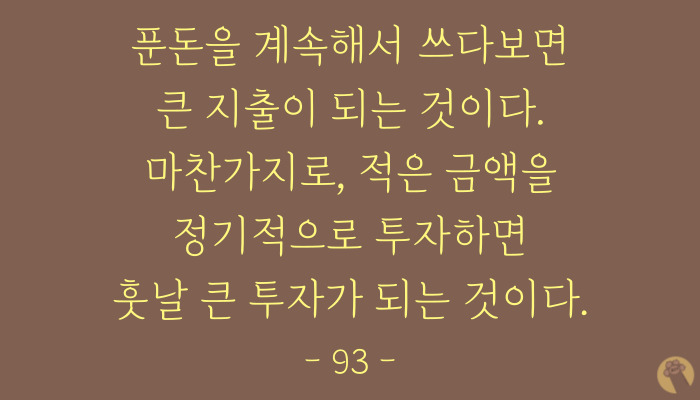 마찬가지로 푼돈을 아껴서 투자하는 행위가 반복되면 나중에는 큰 투자가 되는 거예요.