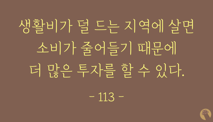 집값이 저렴한 곳, 또는 면적이 작은 곳에 살면 관리비 등의 고정지출이 줄어들고, 세금도 덜 내기에 투자금을 빨리 모을 수 있다고 해요.