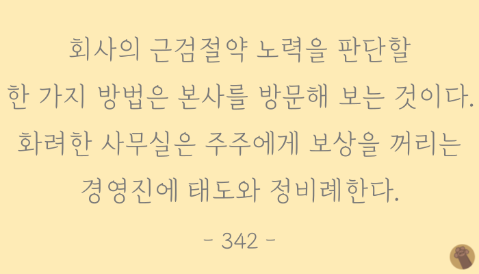 투자하려는 회사에 갔을 때 겉모습이 너무 화려하다면, 투자한 돈이 어디에 쓰일지 짐작할 수 있죠.