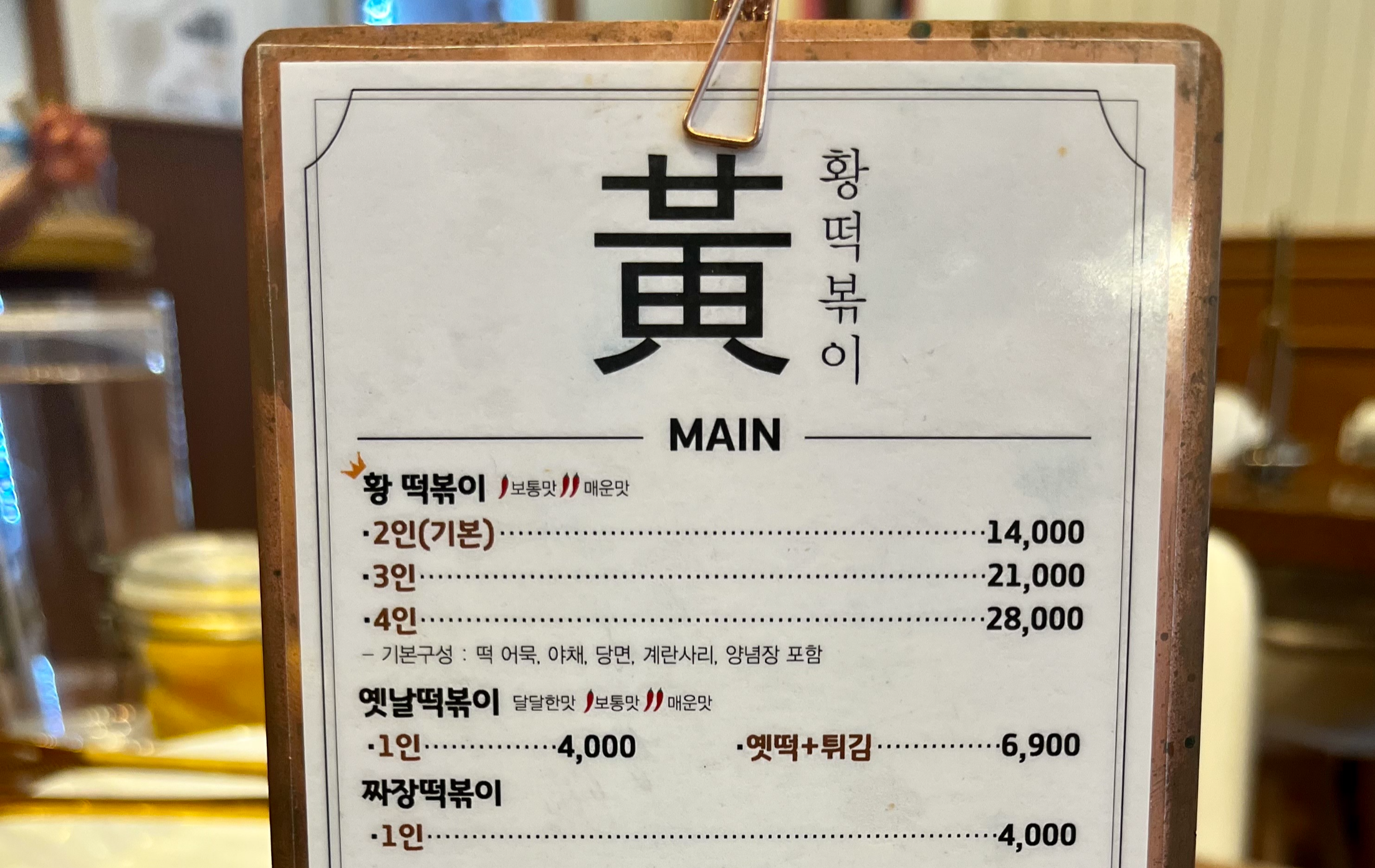 나는 끓여 먹는 즉석떡볶이를 아주 좋아하기에 황떡볶이 2인과 모둠튀김을 주문했다.