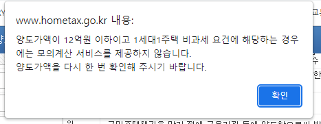혹시나 과세되는지가 궁금하여 양도소득세 미리계산을 해보았으나, 비과세는 지원하지 않는다고 한다.