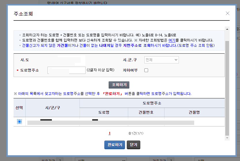 해당 주택의 주소를 입력하고 완료하기를 누른다.