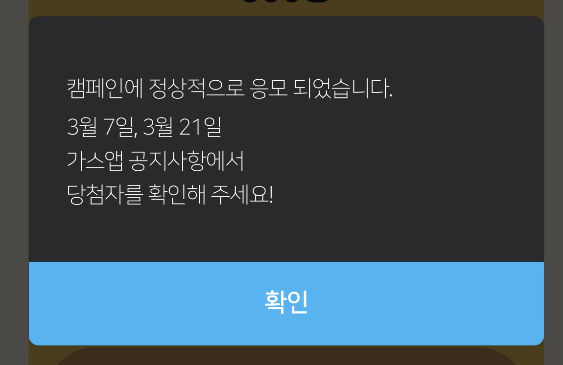 당첨 결과는 3월 21일 화요일 가스앱 공지사항을 통해 확인할 수 있다.