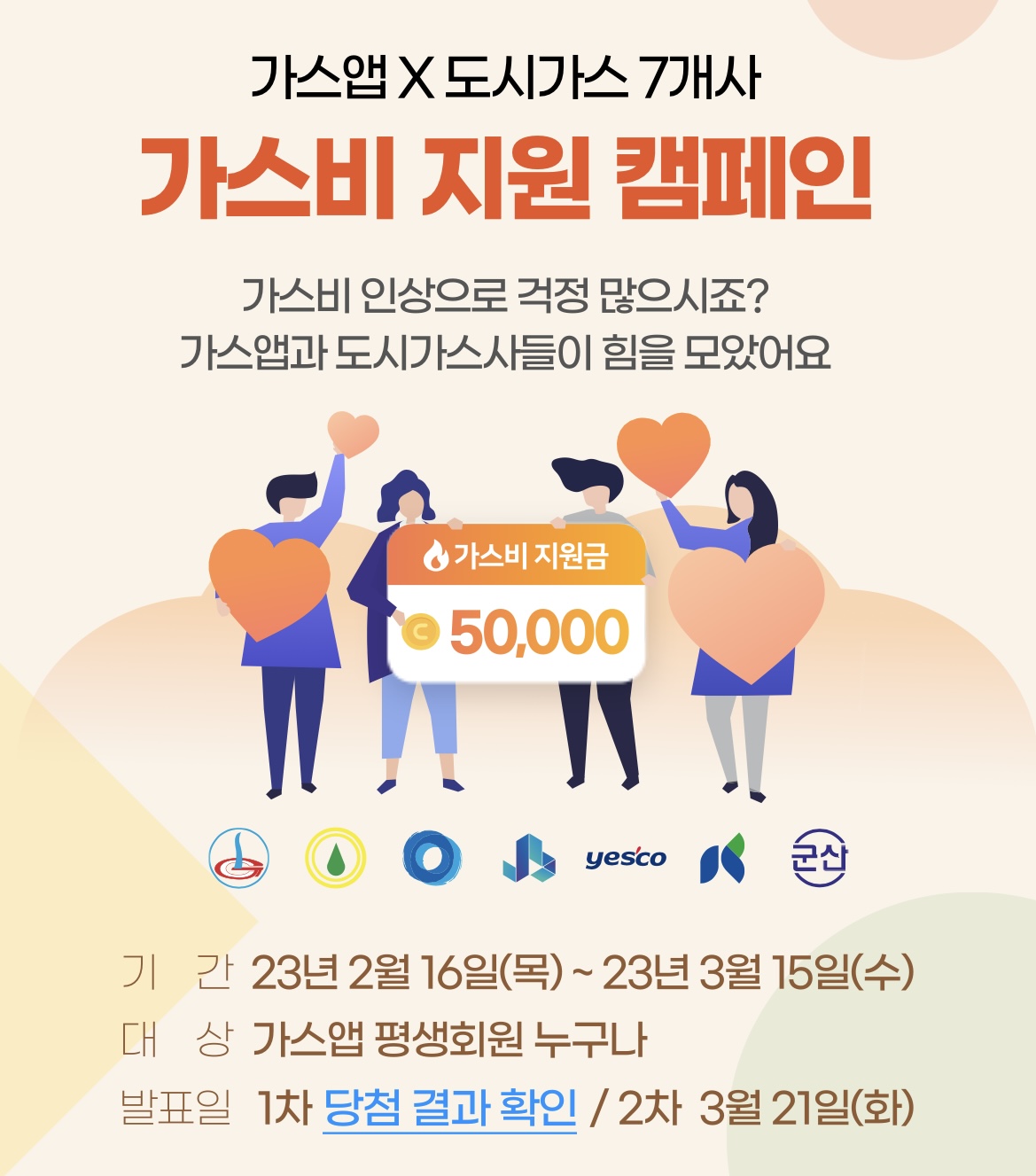 가스비 지원 캠페인은 평생회원이라면 누구나 응모할 수 있다.