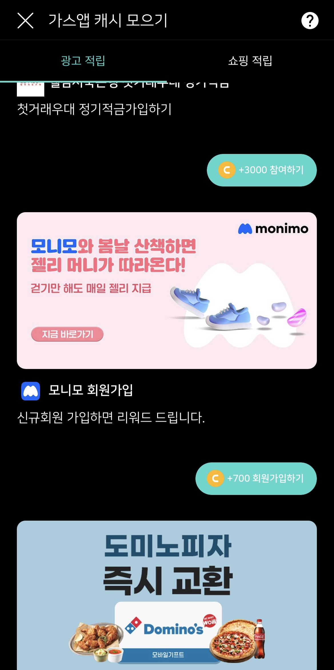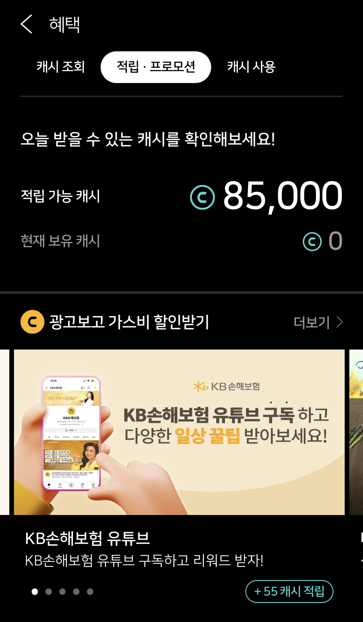 캐시 모으기는 크게 광고 적립과 쇼핑적립이 있는데, 광고적립은 광고를 보거나 회원가입, 가격비교, 보험료 확인등을 하면 캐시를 얻을 수 있다.
