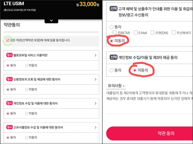 저는 필수만 체크했는데 가입하는데 문제는 없었어요.
