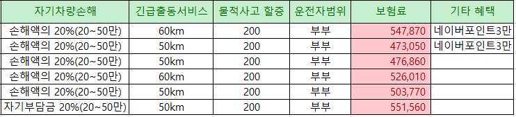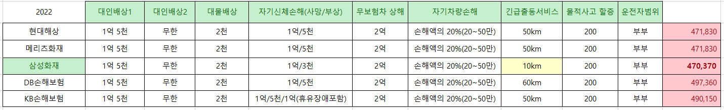 작년에도 나름대로 여러 보험사를 비교해 보고 최저가로 가입하려고 했지만, 보험사마다 똑같은 조건을 적용하지 않은 아쉬움이 남아 있어서 이번에는 좀 더 꼼꼼히 비교해 보기로 했다.