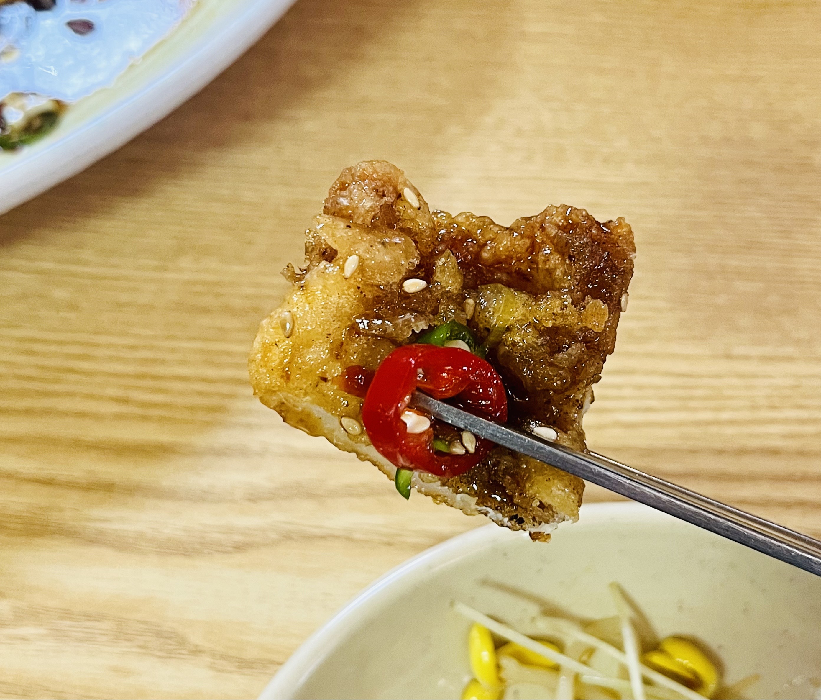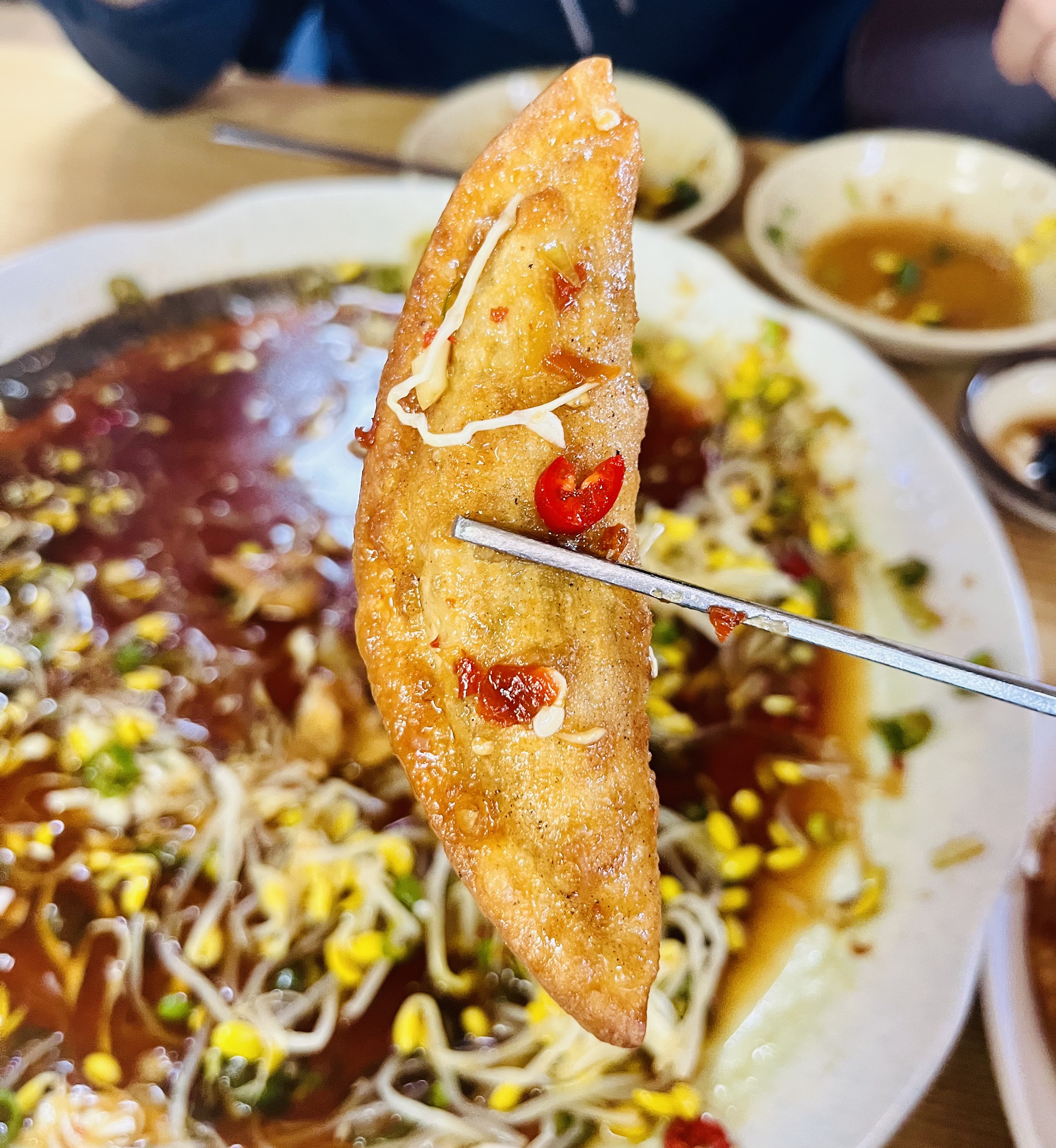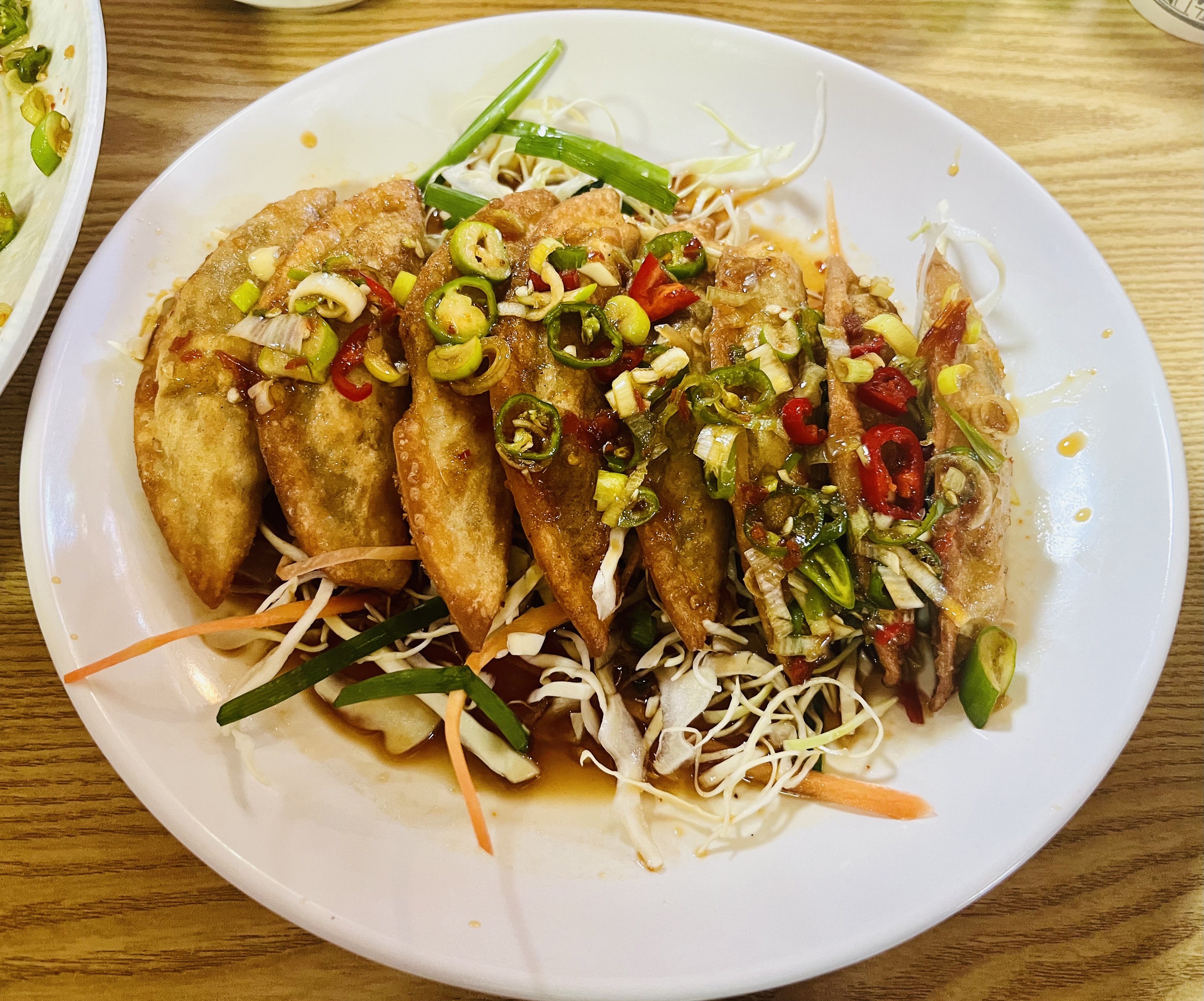 순식간에 사라져 버린 간장 탕수육이 더 먹고 싶었으나 아쉬운 대로 비슷한 모양의 유린만두도 먹어보았다.