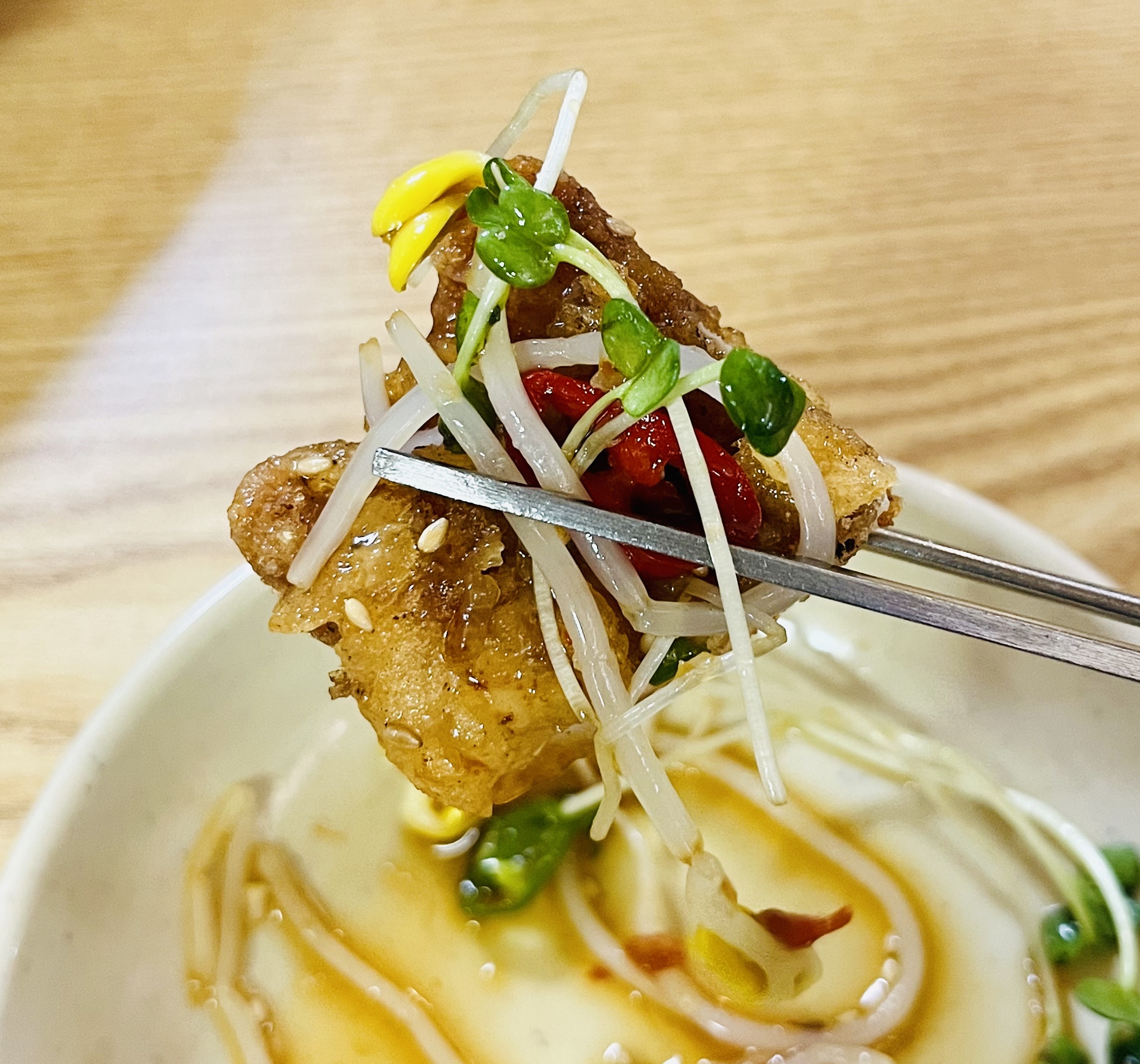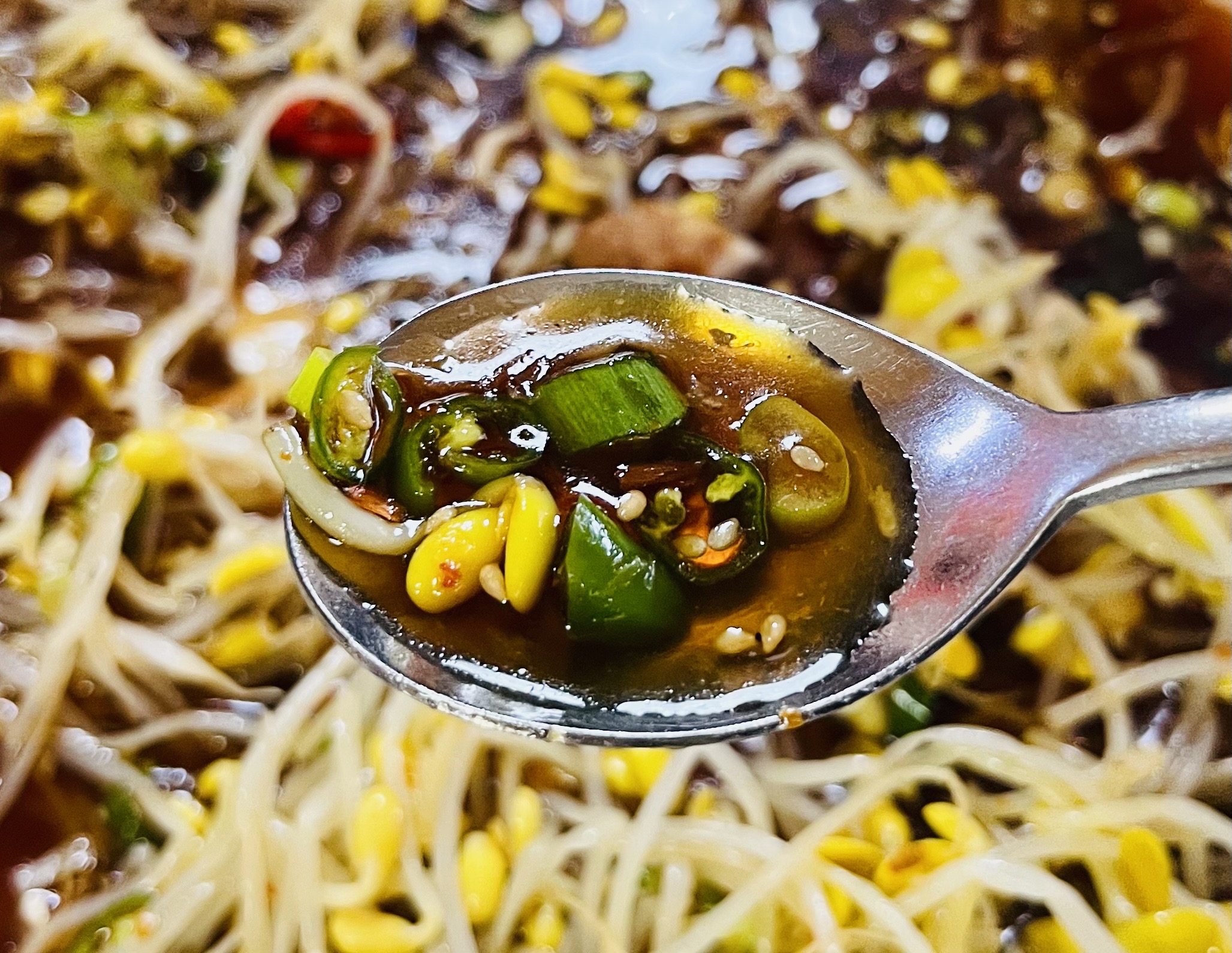 쫑쫑 썰어 넣은 고추와 콩나물을 얹어 먹으면 그야말로 감동이 몰려온다.