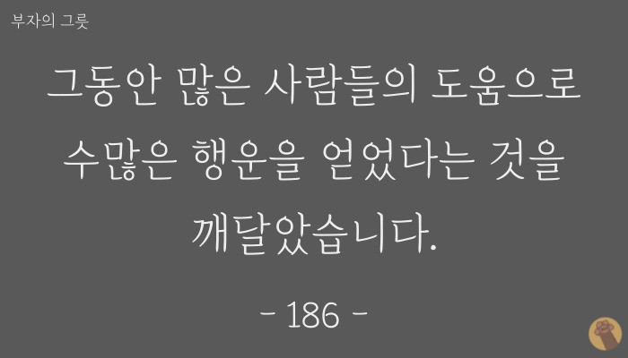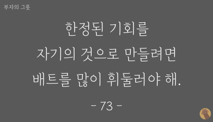 큰 그릇을 가지고 있는 사람은 큰돈을 모으고 작은 그릇을 가지고 있는 사람은 작은 돈밖에 모을 수밖에 없는 것이다.