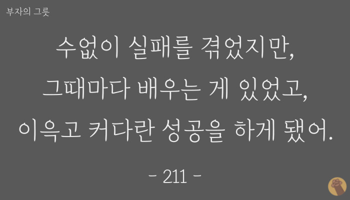 실패는 아픔이 따르지만 그때마다 무언가를 배울 수 있고 성공으로 가는 단계임을 기억하자.