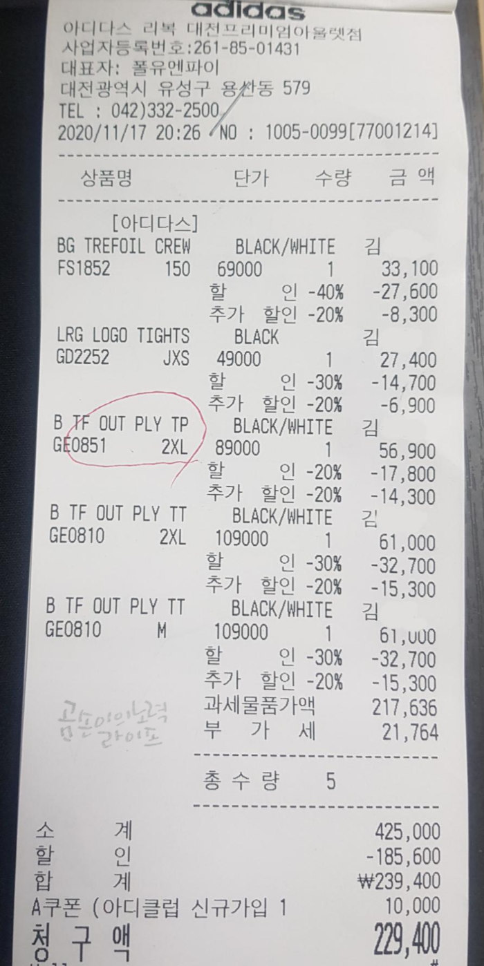 작년에 아디다스 상설매장에서 신랑 트레이닝복 세트 사면서 20만 원 정도 줬던 기억이 나는데