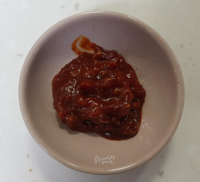 소스의 양이 넉넉해서 남은 건 따로 담아 찍어먹기로 했어요.