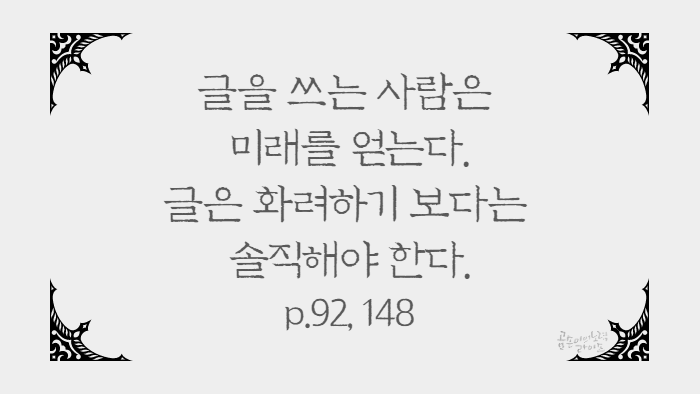 부족한 것도 자연스럽게 드러나는 글이 더 매력적이고 독자들의 사랑을 받을 수 있습니다.