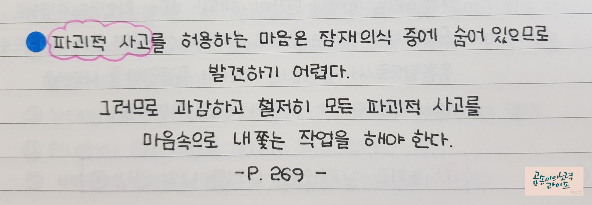 책을 읽고 나니 이것이 내 마음에서 내쫓아야 할 파괴적 사고라는 것을 알았어요.