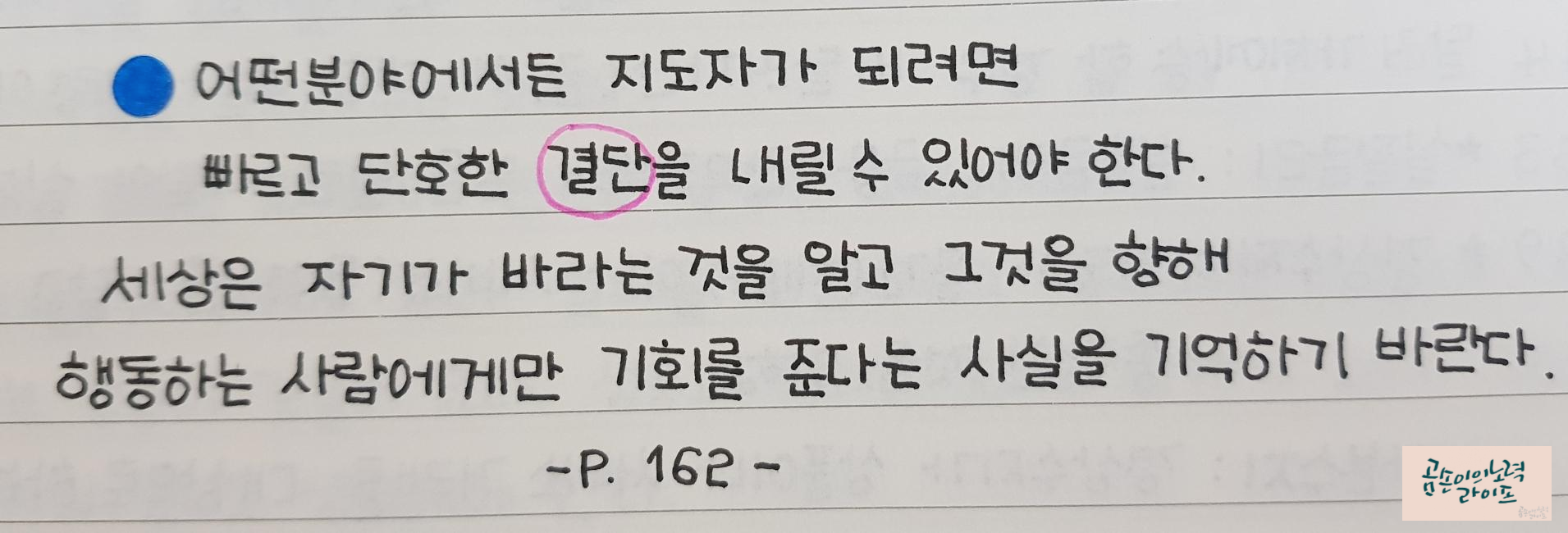 이 책에서는 우유부단한 사람은 절대 지도자가 될수 없다고 말해요.