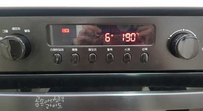 익혀지는 동안 오븐에서 맛있는 냄새가 폴폴 났어요.