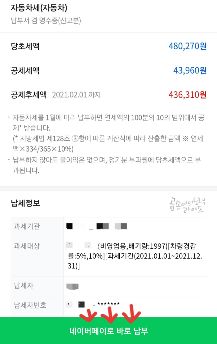 네이버 페이로 바로 납부를 클릭해 주세요.