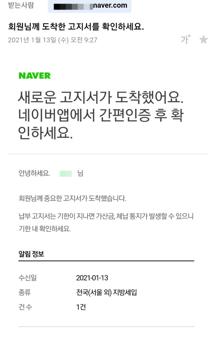 네이버 홈페이지를 통해 확인할 수도 있고 메일로도 보내줍니다.