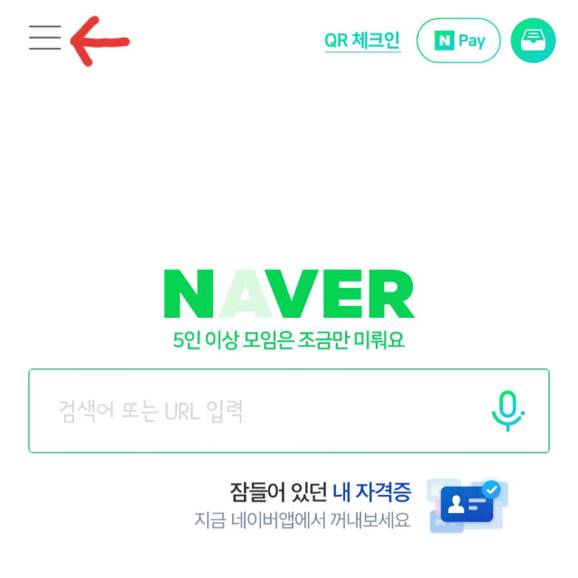 네이버 전자문서는 홈 화면에서 왼쪽 맨 위에 있는 세줄을 클릭하고