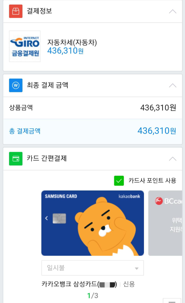 자동차세를 납부하기로 했어요.