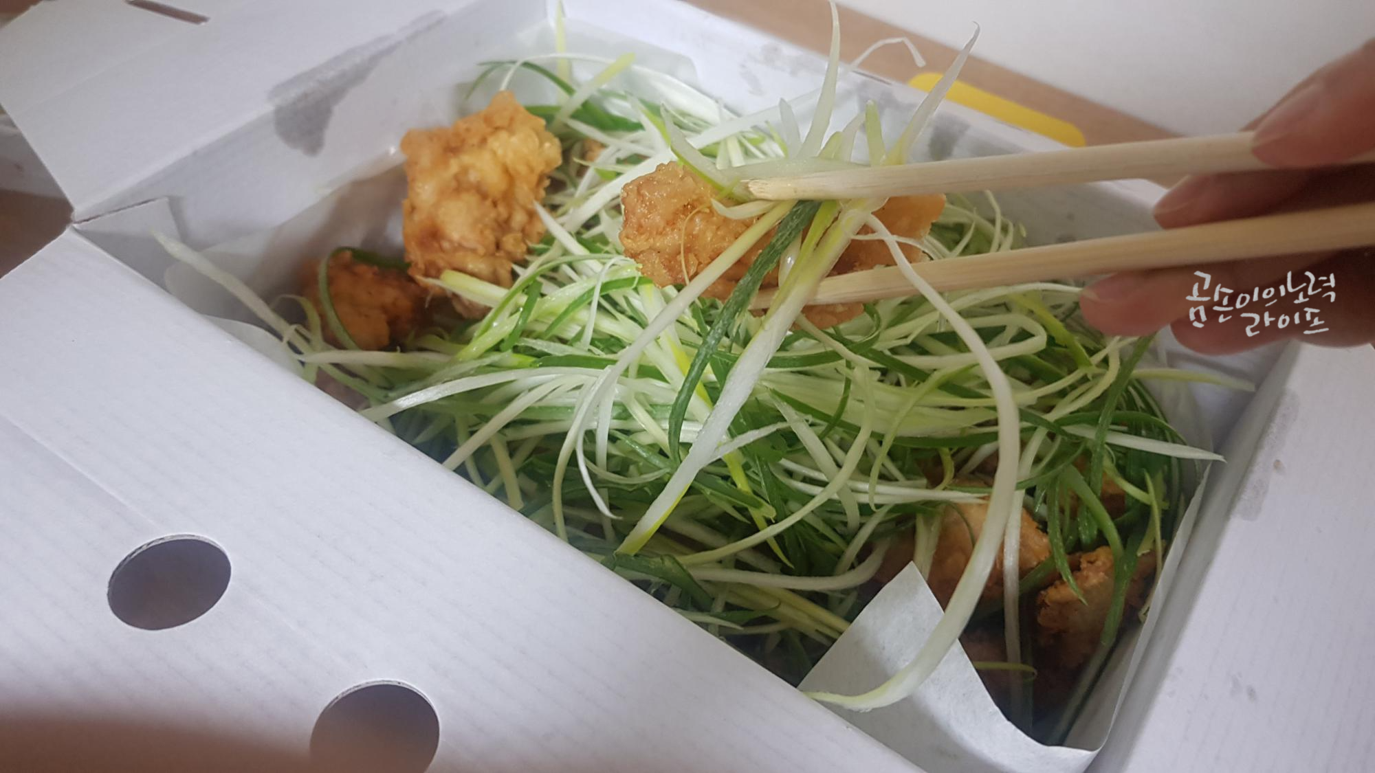 파와 함께 먹으면 색다른 치킨의 맛을 경험할 수 있습니다.