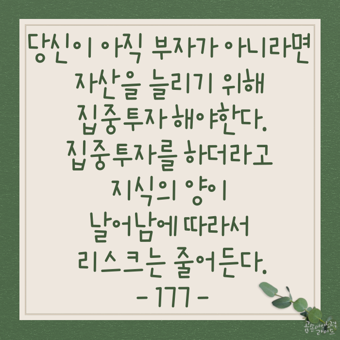 개인 투자자는 몇 가지 종목(기업)에 대해 꾸준히 공부하고 집중해서 투자하는 게