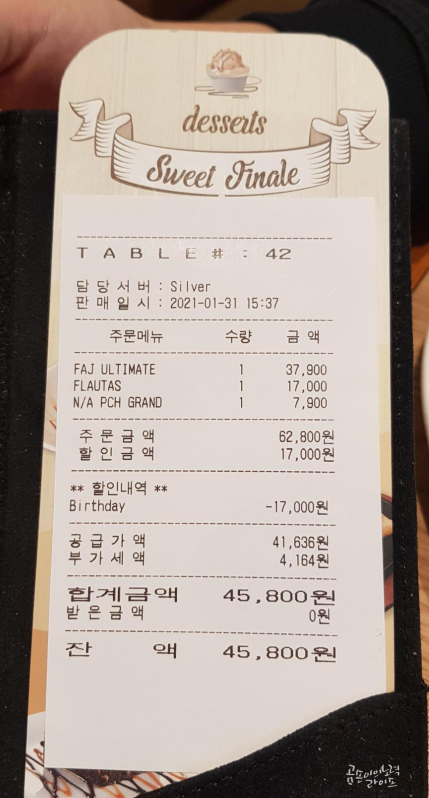 이건 생일 쿠폰이 있어서 무료로 먹을 수 있었어요.