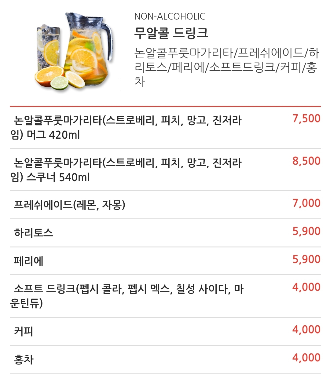 논알콜이었지만 달달한 과일 칵테일을 마시는 느낌이었어요.