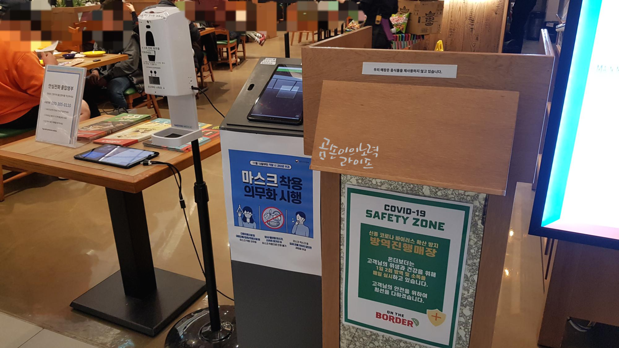 QR코드 체크인과 손 소독을 하고 기다리는 동안