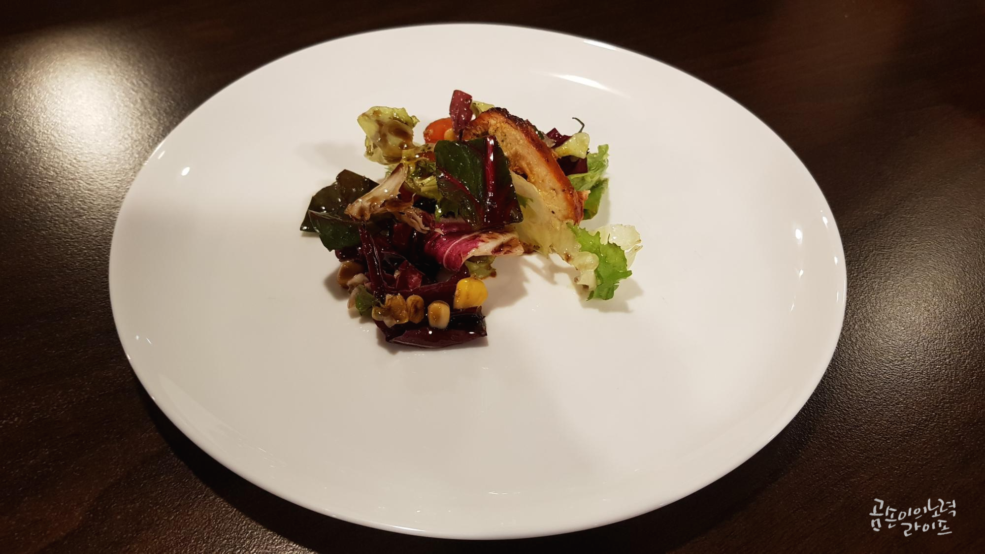 맨 처음 나온 메뉴는 오늘의 샐러드인 탄두리 치킨 샐러드예요.