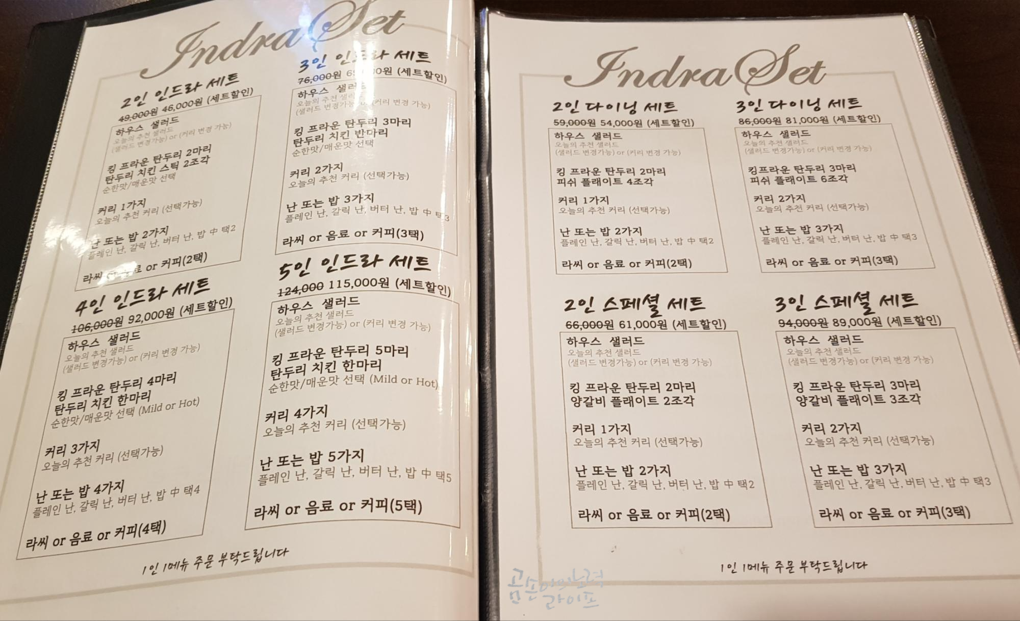 우리는 항상 먹는 인드라 2인 세트(46,000원)로 주문했습니다.