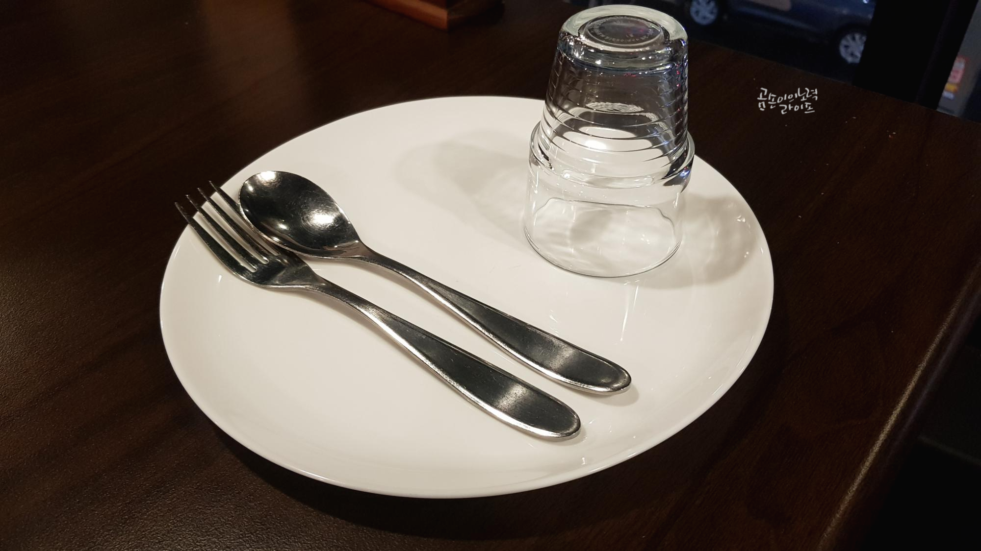 물컵과 접시는 정갈하게 놓여 있어요.