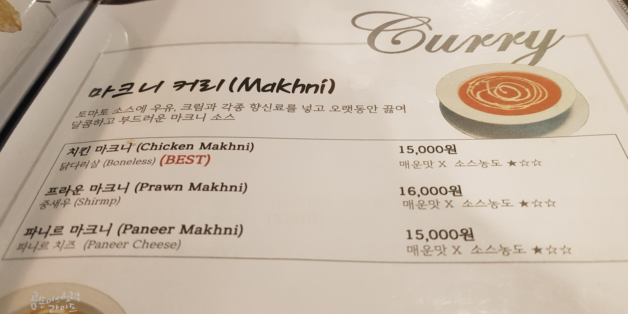 그렇다고 향신료가 너무 강한 것도 아니어서 한국인의 입맛에 안성맞춤이에요.