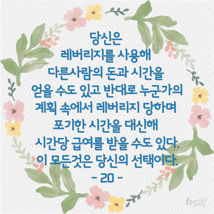 우리가 좋아하고, 하고 싶은 일을 하면서 경제적으로도 자유를 얻으려면 레버리지를 반드시 해야 하는 것이죠.