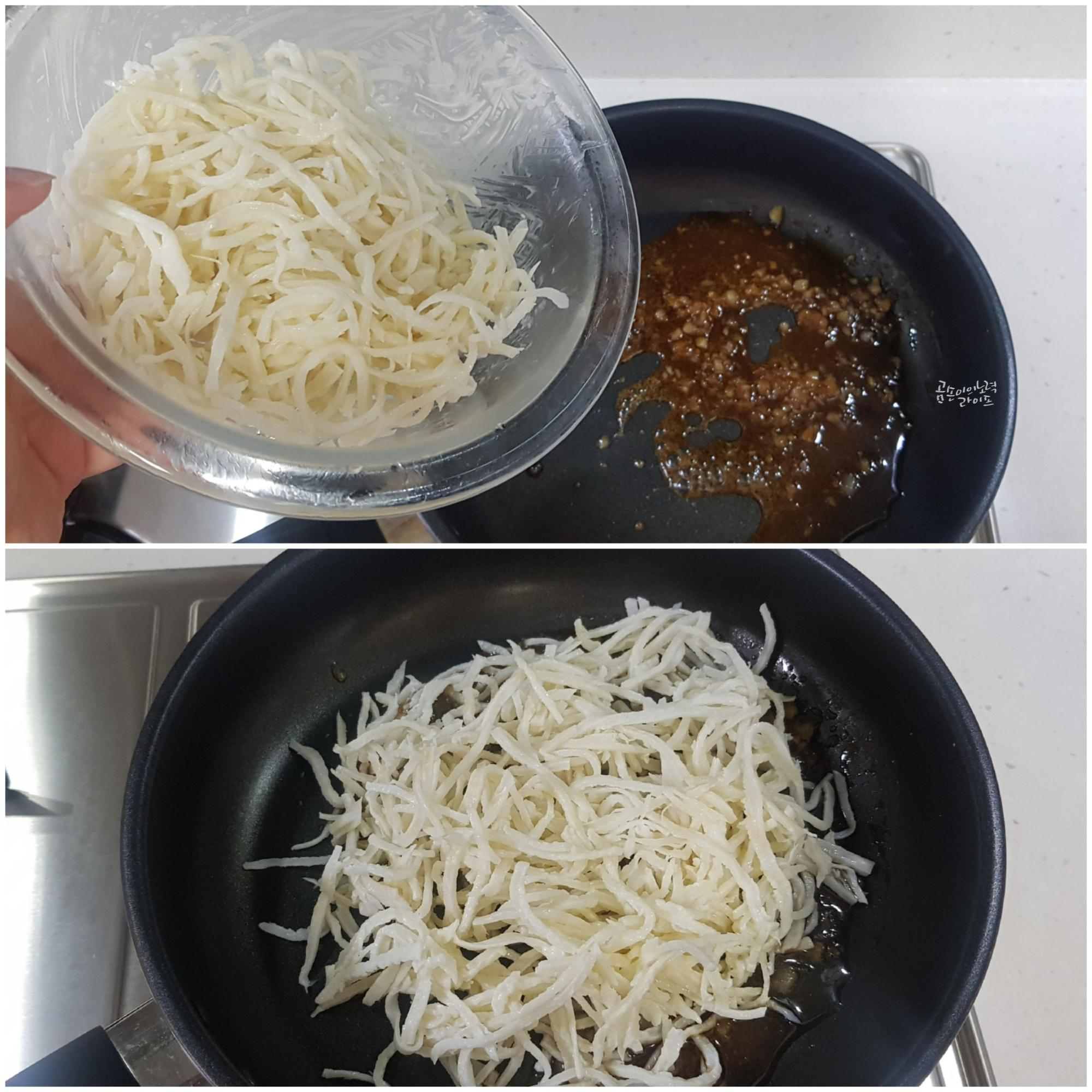 물에 담가놓았던 진미채는 물기를 꼭 제거해주세요.
